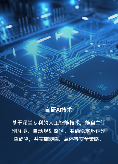 基于深蘭專利的人工智能技術(shù),能自主識別環(huán)境、自動規(guī)劃路徑、準(zhǔn)確穩(wěn)定地識別障礙物,并實施避障、急停等安全策略。